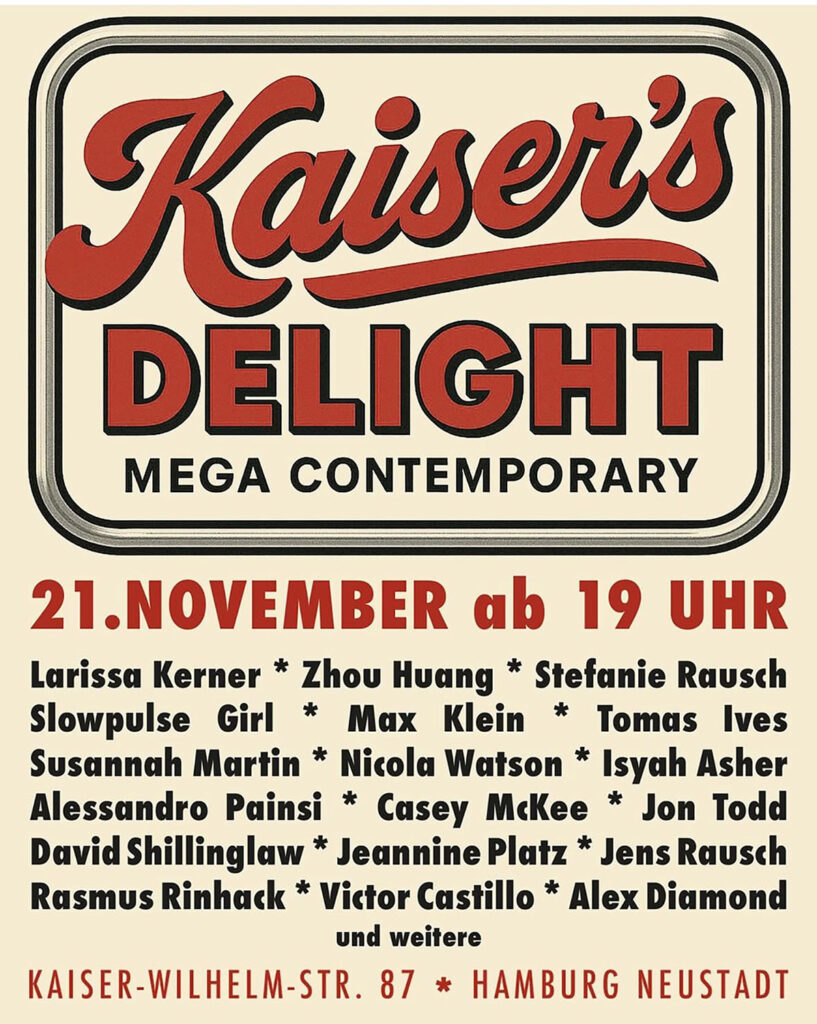 Am 16.10. ab 19 Uhr findet in der MEGA Contemporary Galerie, Bäckerbreitergang 75 ein KĂ¼nstler*innengespräch mit Alex Diamond, Max Klein und mir statt. Moderiert wird das Ganze von Melvin und ich habe schon eine Menge Wörter eingepackt, um auf viele Fragen zu antworten. Es wĂ¼rde mich sehr freuen, wenn ihr vorbei schaut.