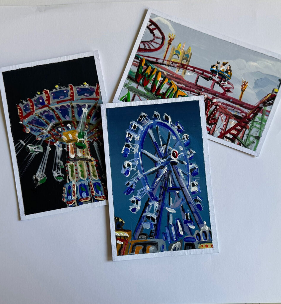 2 Acrylmalereien und 4 Skizzen sind fertig geworden und konnten gegen eine Spende mitgenommen werden.
