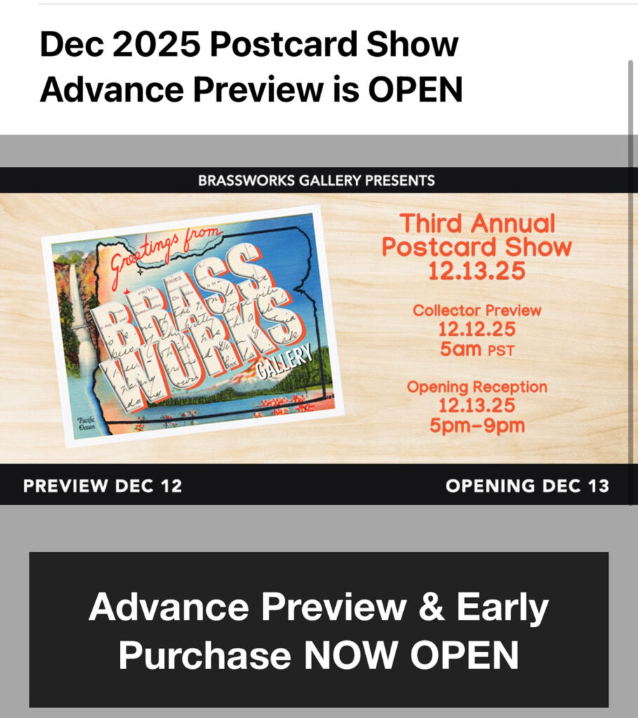 WOW! Meine Postkarten haben es Ă¼ber den Ozean bis nach Portland, Oregon geschafft und sind Teil der Second Annual Postcard Show in der Brassworksgallery.