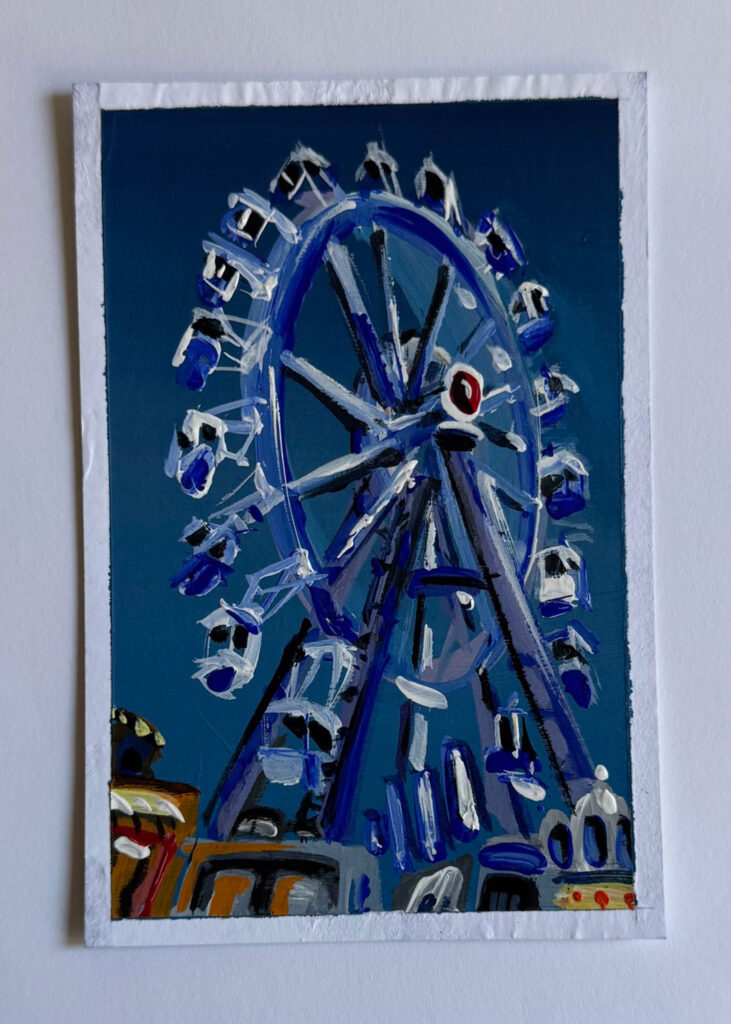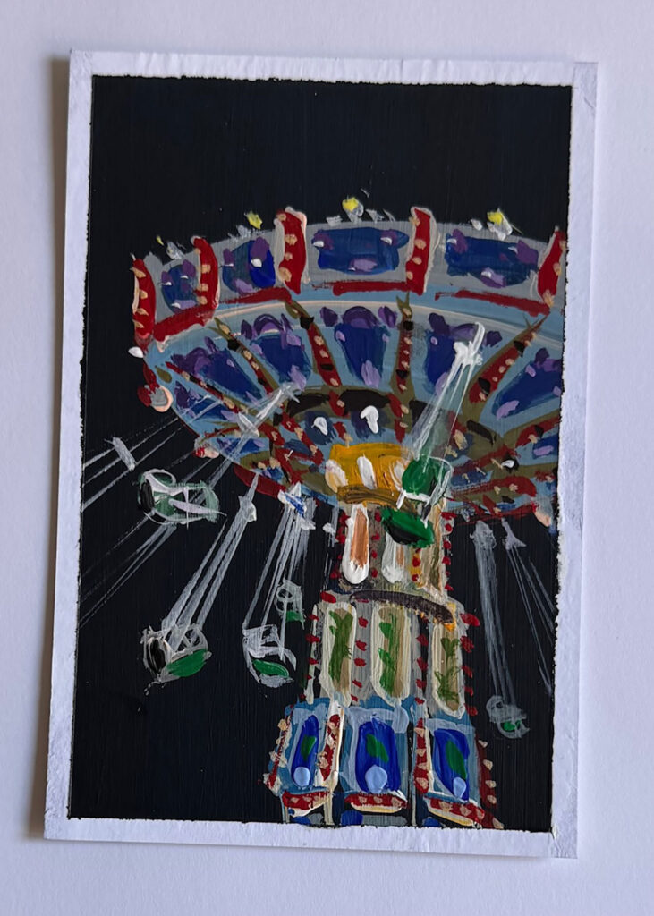 Es heiĂŸt “ on the road“, ist 42×30 cm groĂŸ und mit Acryl auf Leinwand gepinselt.